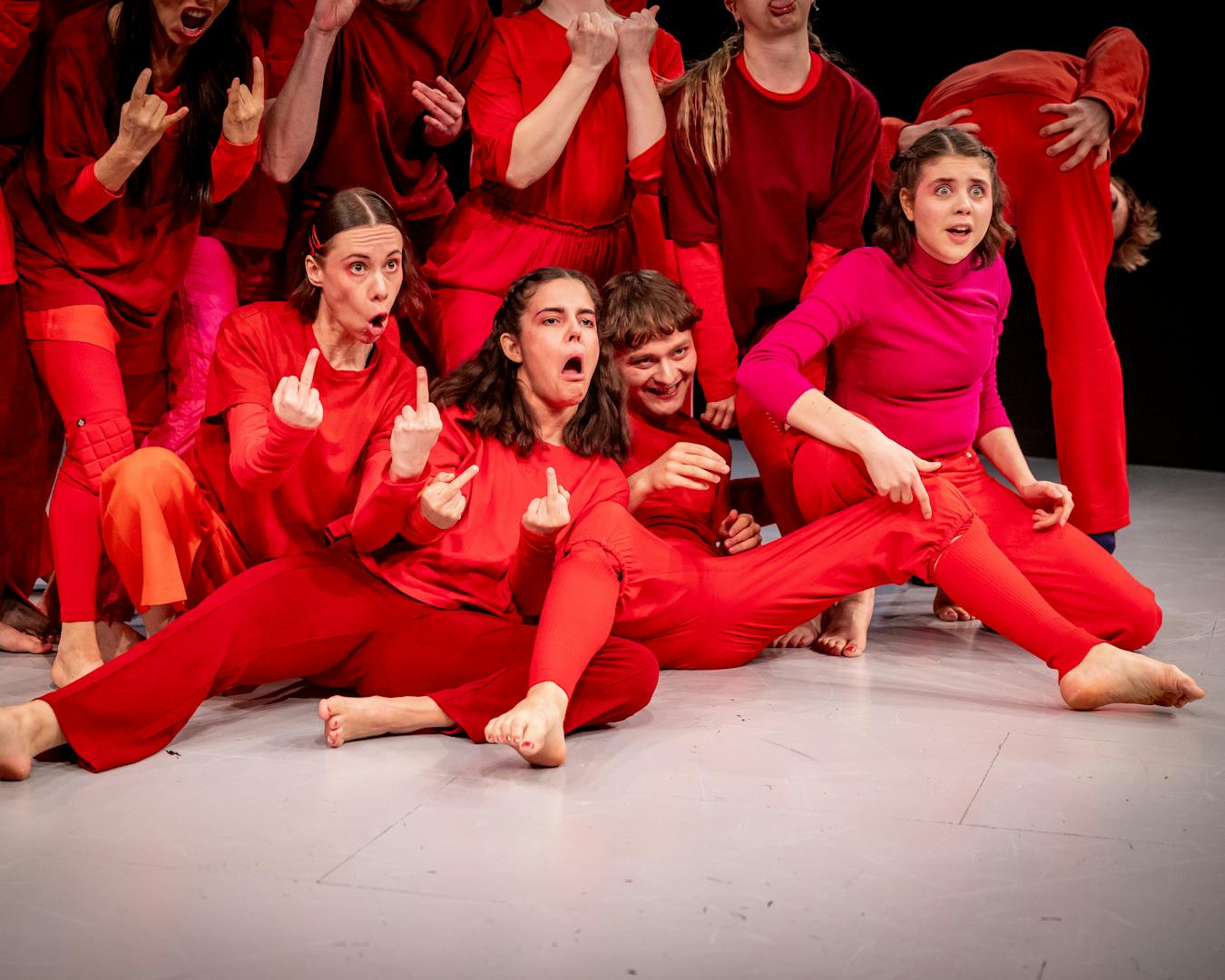 Ett urstarkt kollektiv av individuella personligheter fyller vridscenens rundel med kraftfullt fysiskt utspel, attityder, gester, blickar.